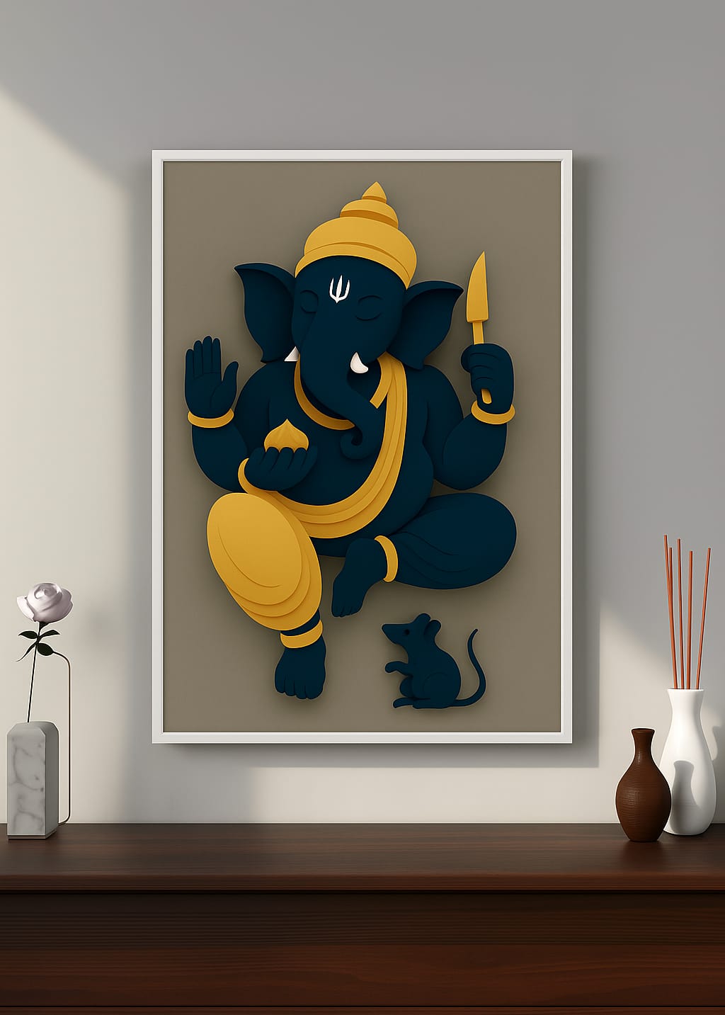 Celebrate the divine presence of Lord Ganesha with this abstract wall poster, designed to blend spiritual symbolism with modern artistry. Its minimalist yet evocative design makes it a perfect addition to any space, inspiring wisdom and positivity. Crafted with high-quality materials, this poster offers vibrant colors and lasting durability, ideal for enhancing your home or office ambiance with a touch of sacred elegance.
