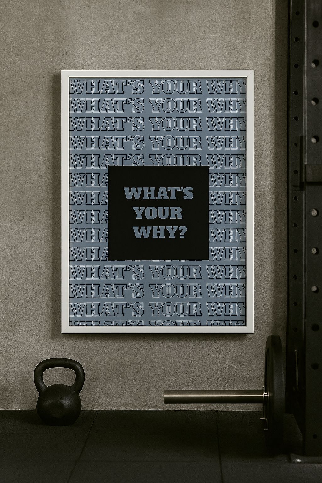 Stay motivated with this bold “What’s Your Why?” wall art – perfect for your gym or personal space. The modern design with repeated typography keeps your focus sharp and your purpose clear. Available in Black and White frame options to match any setup. Printed on premium matte paper for a clean, aesthetic look. A daily reminder to push harder, stay consistent, and never forget your reason.